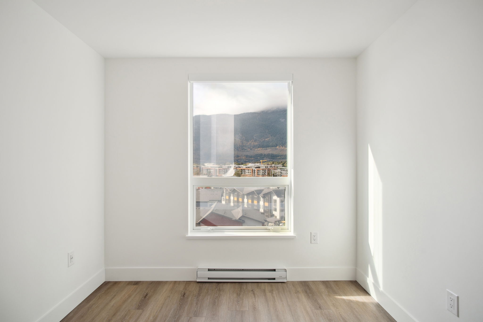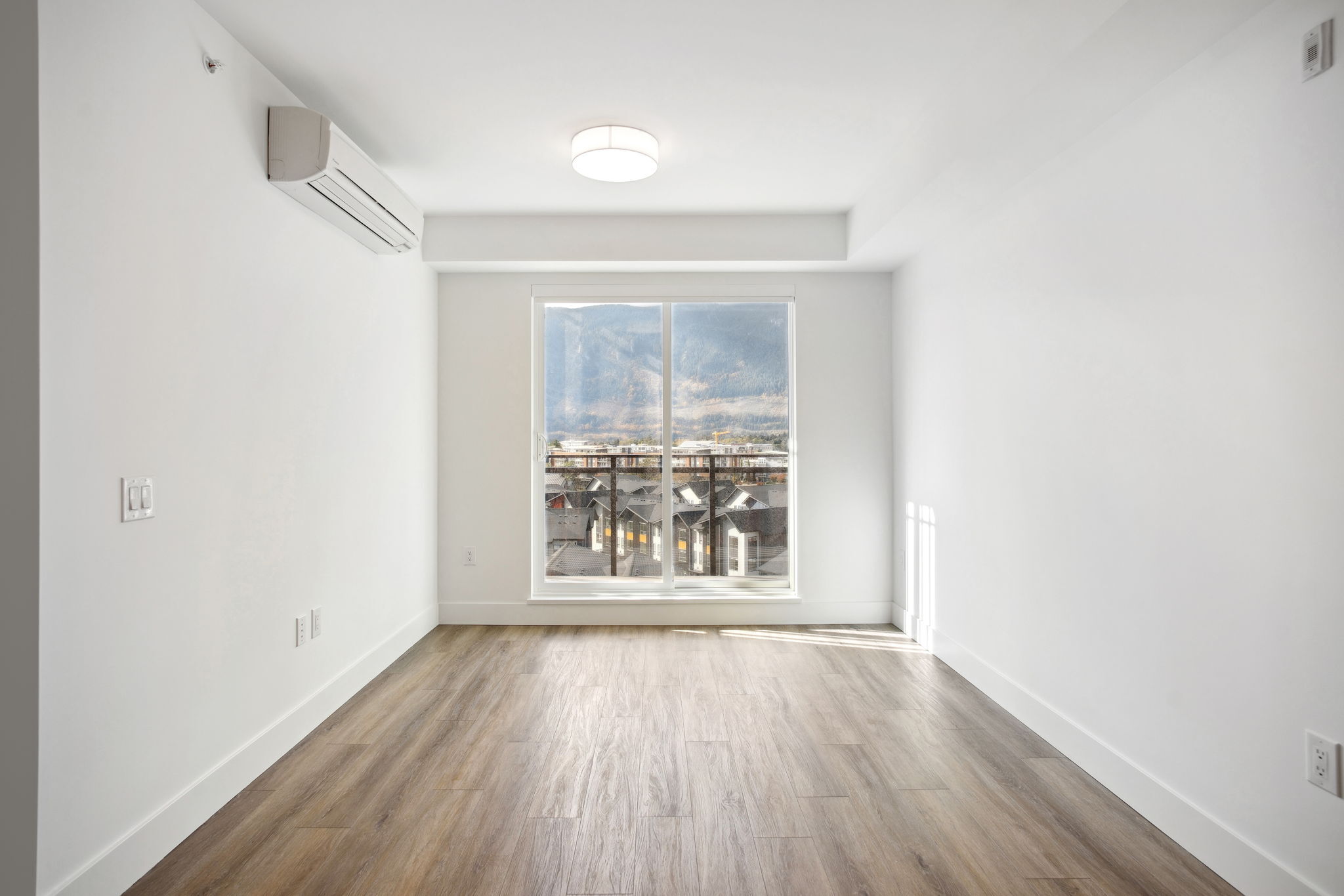 A thoughtfully designed one-bedroom home that balances comfort and functionality. The bright living and dining area features large windows that showcase mountain views throughout the day. A spacious bedroom with walk-in closet, full kitchen, modern appliances, in-suite laundry, and air conditioning make this home feel complete.